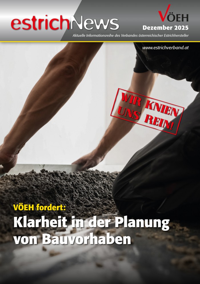 Die jährlich erscheinenden Estrich News greifen aktuelle Themen auf und haben das Ziel, den Servicecharakter des Verbandes zu stärken. Die Estrich News werden per Post an die österreichischen